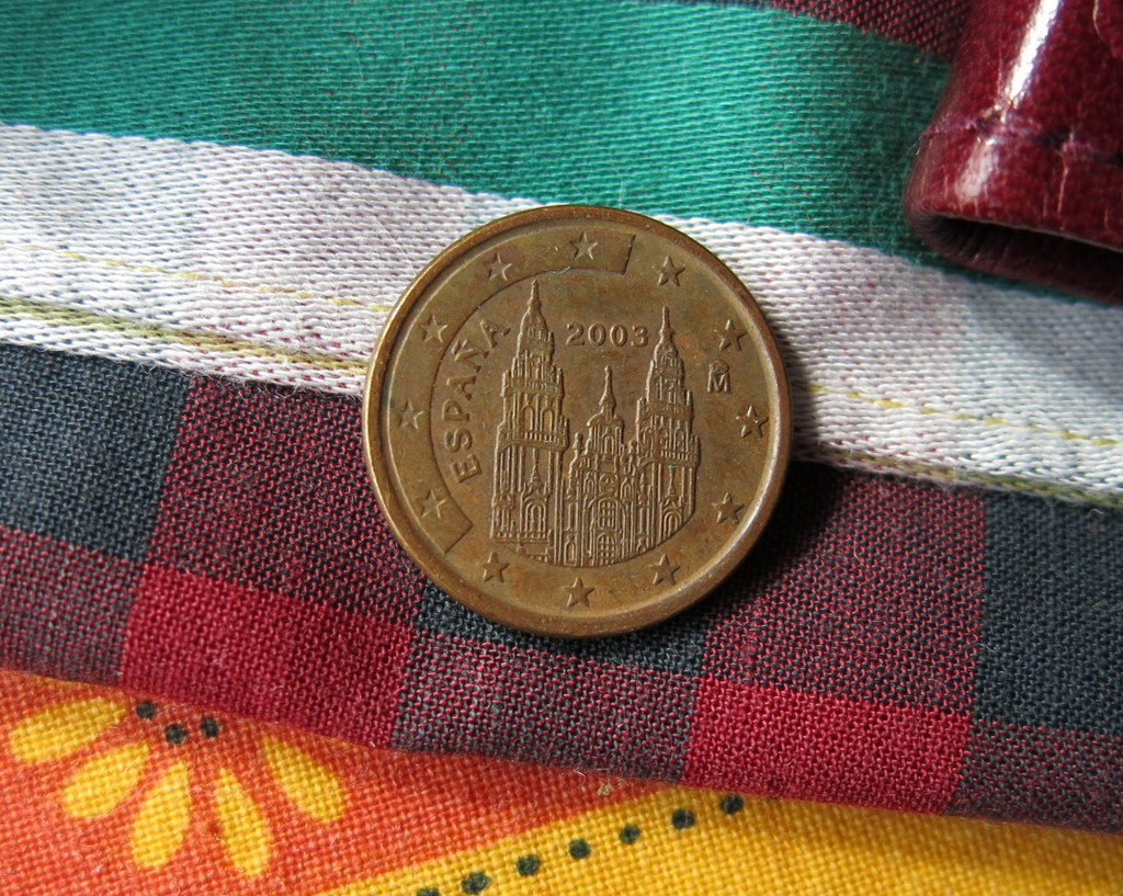 She saved one Spanish Euro, because it shows the Santiago Cathedral (and it fit into her scrip!).