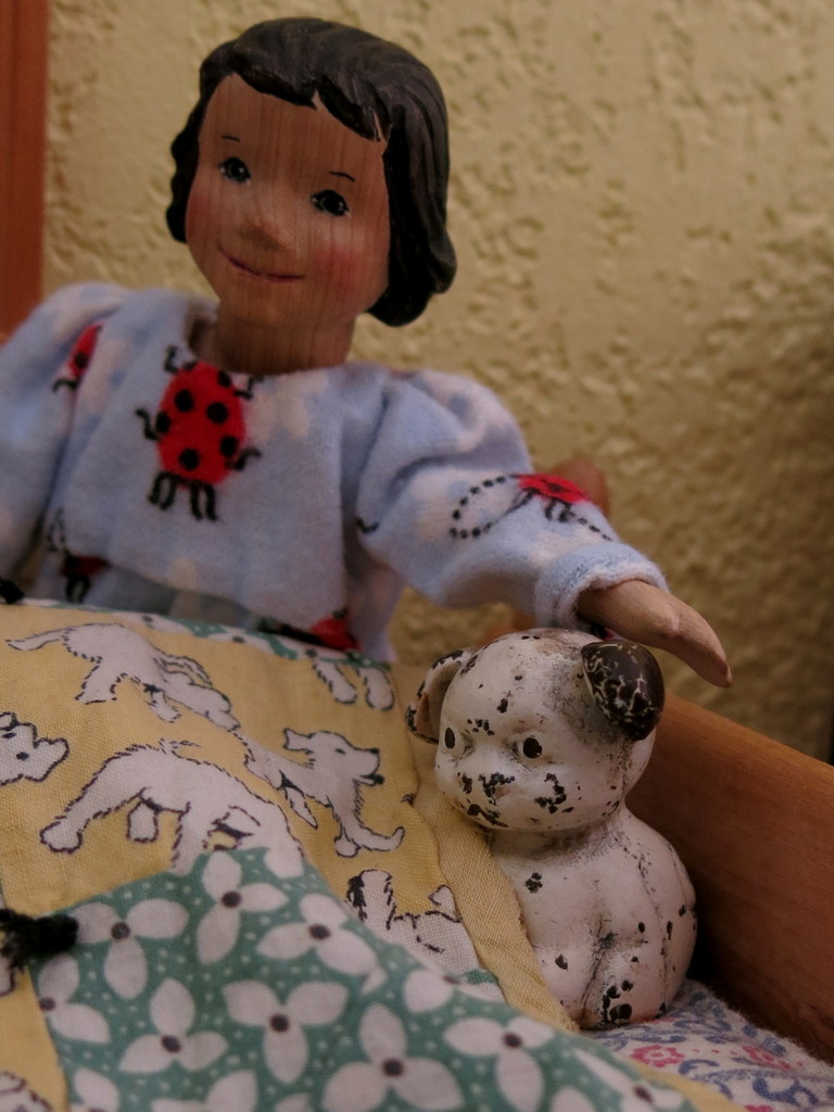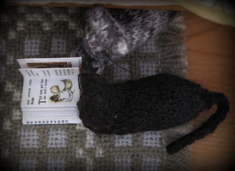 …reading one of their favourite bed time stories – about mice that run wild in a doll’s house. The doll’s house human wants to get a Policeman Doll to chase away the mice, and her nurse wants to get a mousetrap.