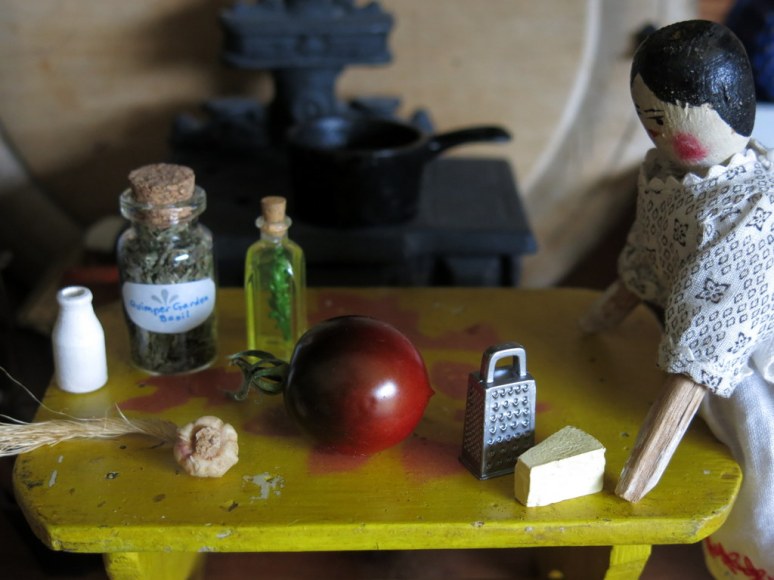 Jane, thanks so much for letting us take a peek at what you’re up to today. There are still red tomatoes on our counter, fresh heavy creamed milk in the refrigerator, this year’s garlic in a nearby basket and the other ingredients are handy-this will be on our menu this weekend. Thank you so much for this lovely sounding recipe and the added peek into your miniature kitchen. It helps set the mood (for me to make food) on these days that are more grey.