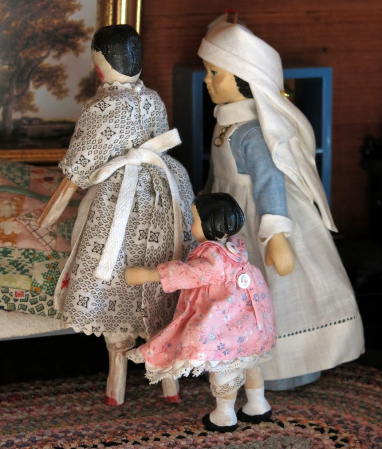 • The quilt is one I made using scraps of a yoyo quilt made in the 1930’s, the tea cosy made by Hitty friend Blueheron, and the wee rag doll I bought at a craft fair many years ago…Constance is getting lots of kindness and attention, and even a bit of peace and quiet so she can sleep!