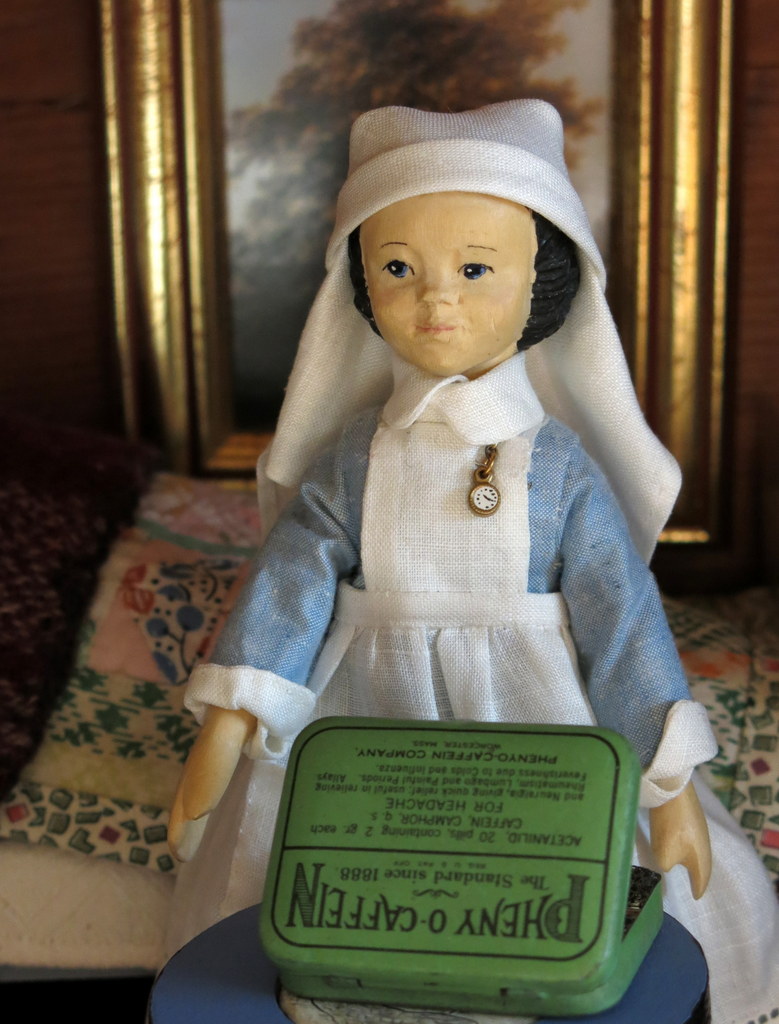 • The quilt is one I made using scraps of a yoyo quilt made in the 1930’s, the tea cosy made by Hitty friend Blueheron, and the wee rag doll I bought at a craft fair many years ago…Constance is getting lots of kindness and attention, and even a bit of peace and quiet so she can sleep!