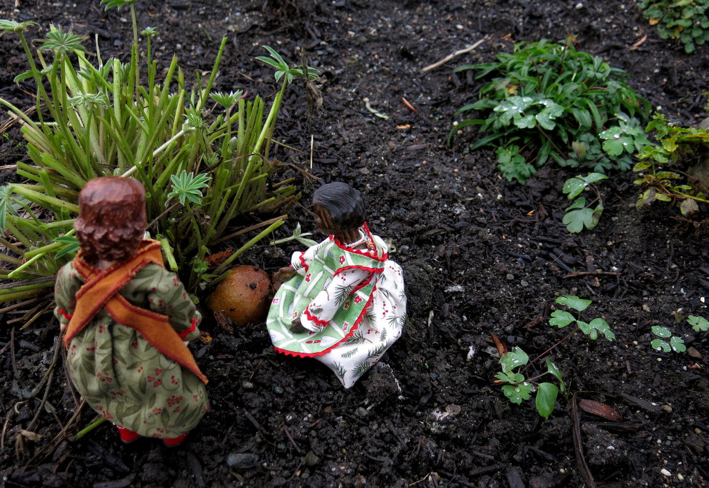Having several more pair of hands (wooden) on a garden job, makes the work fun. The girls helping was adorable.