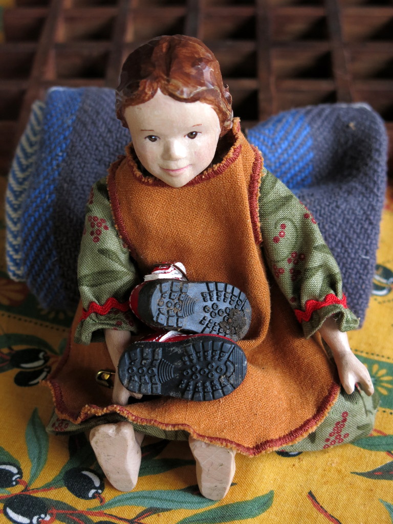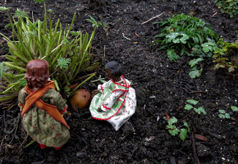 • We find our red Birkenstock clogs do help this gardener feel motivated…and thought Floradora would like to borrow Tuesday’s. She does need her own footwear though, it is taking a while to get that organized.