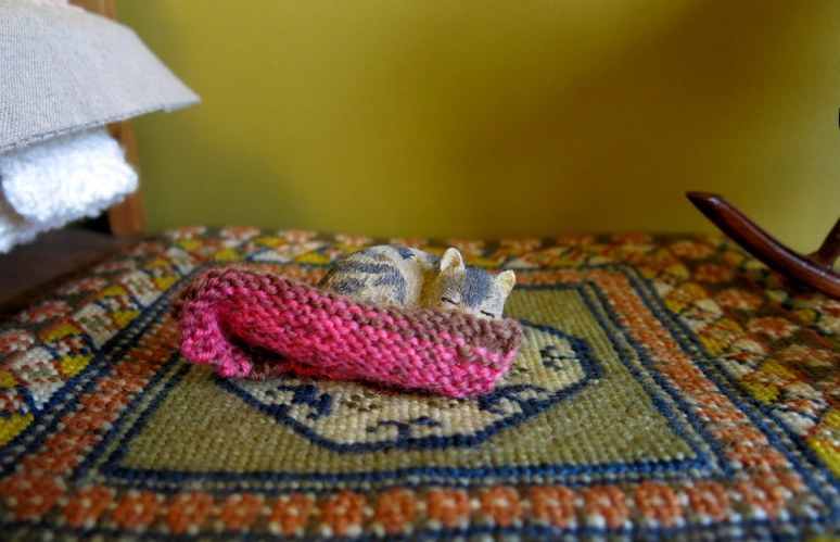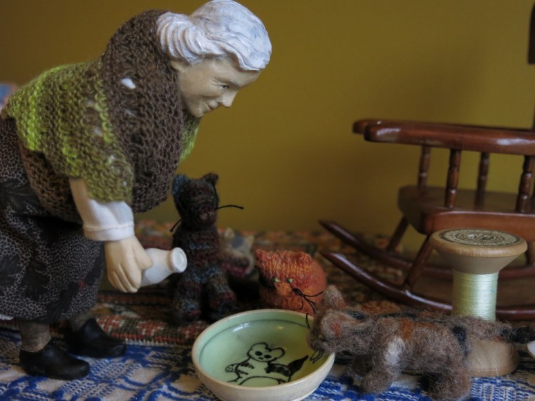 We found the furniture, a bit here and a bit there…a special friend embroidered the bed covers and pillow cases…another friend gave us the carpet. Mormor likes it all, everything has a history and is comfortable. Cats are all so individual, even Hitty cats!