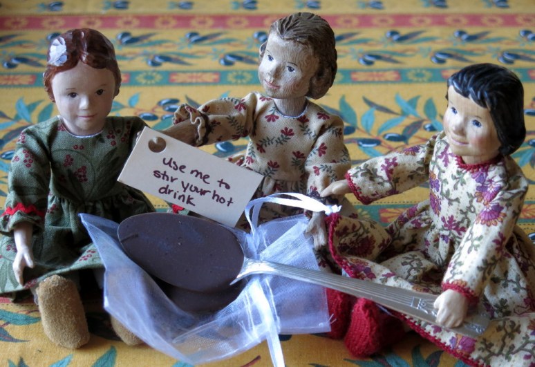 A silver spoon dipped in chocolate on December 1 – YUM! Floradora, Arianell and Tipsy can’t wait to help me use this one!