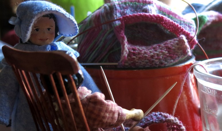 …and because she is going a bit cross-eyed with all the ribbing, slip-knit, s1/k1/psso, and kitchener-stitching, she took a short break…
