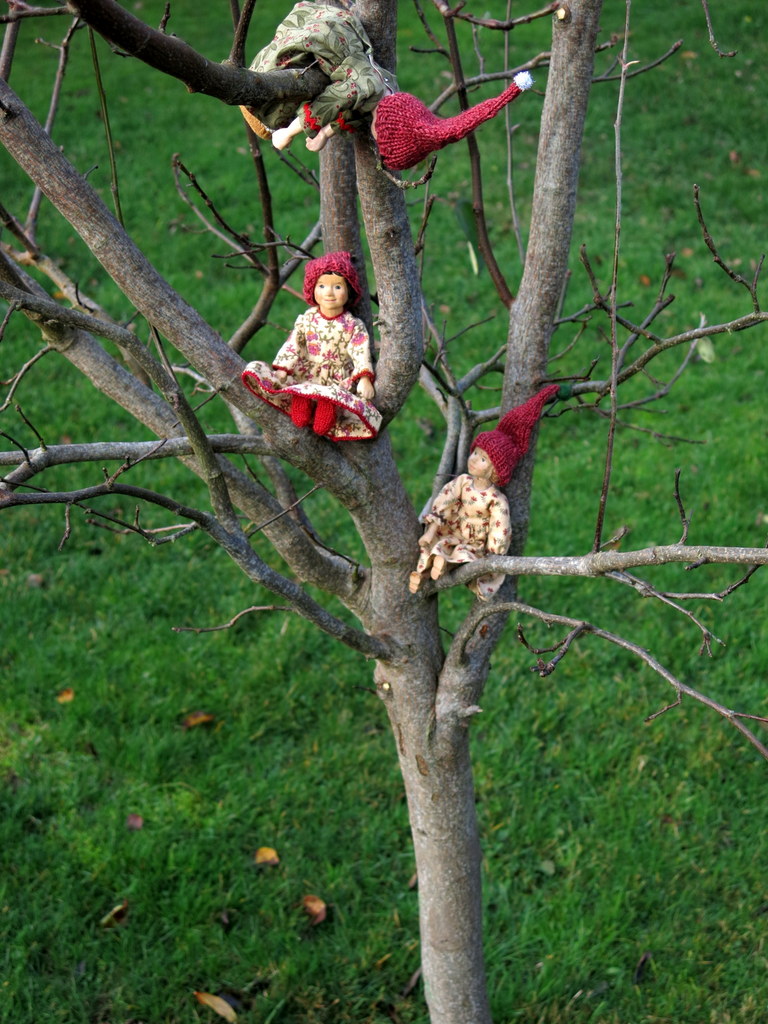 On a mild West Coast December afternoon, Floradora, Tipsy and Arianell climbed up the Quince tree.