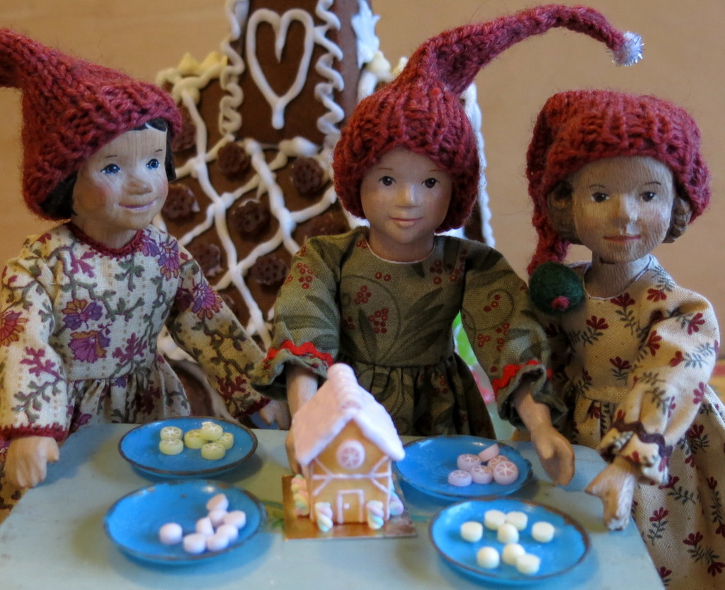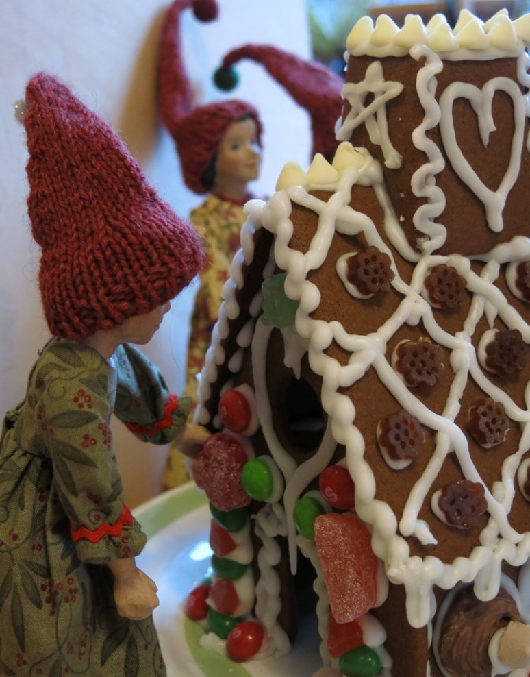 Tipsy and Floradora are particularly pleased with themselves with the sweet little Hitty-sized Gingerbread house decorating efforts….