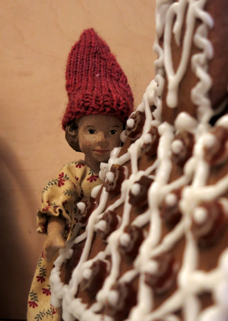 …but were remarkably self-restrained, and stuck them all onto their tiny house with Royal Icing. Thanks to the Dollhouse Lady who sent me this sweet little Gingerbread house made by Lillipuce in Quebec: