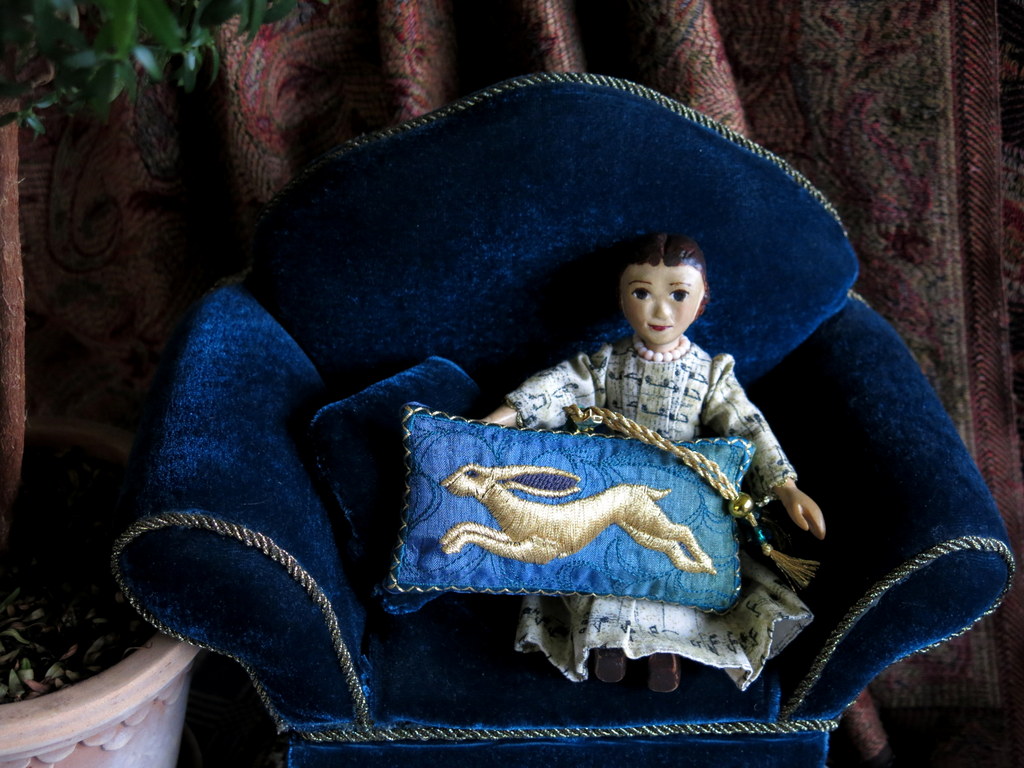 2. Such beautiful bullion work on that hare! She’s very skilled, and the choice of the blue velvet is perfect. No wonder Constance dreamed so sweetly – just as well it wasn’t a visit from the Queen of the Night!