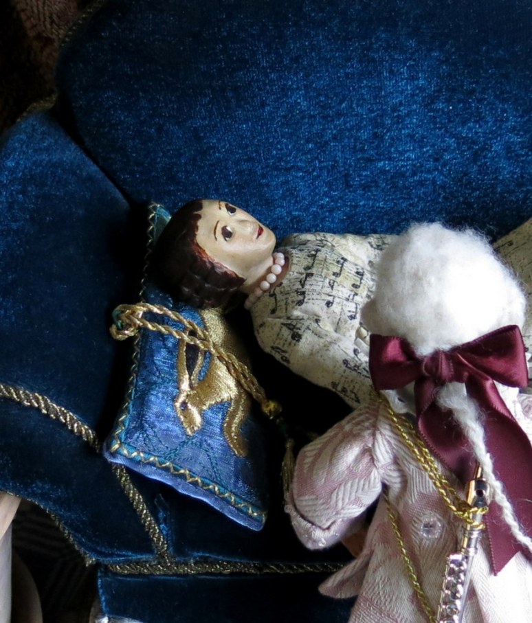 1. This is an artistic dream narrative today! How gorgeous is that pillow and then to have that beautiful opera chair AND Prince Tamino come along! Well, Hitty adventures just don’t get any better. Thank you for sharing this sumptuous scene with us.