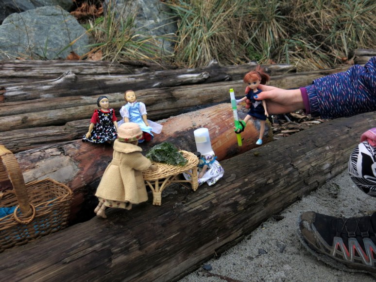 Arianell was very happy to see her cousins; Linnea and Dulcie waited for their turn at the Sea Lettuce picnic; Elsatuna had a strained tendon in her ankle; and Linnea wore her helmet (because she likes to climb on slippery rocks and logs).