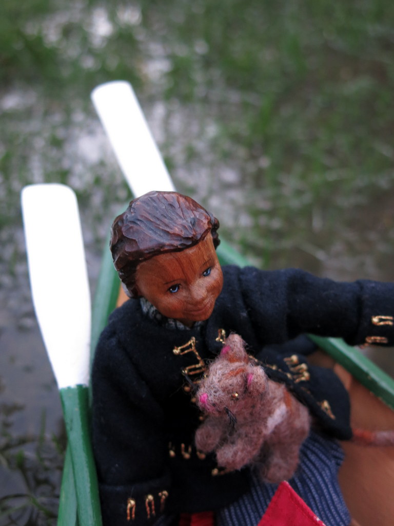 We love the dory, very delightful, perfectly Hitty-sized, and useful for rescuing benighted mousers in distress. We have such fun, even on a soggy soggy day.
