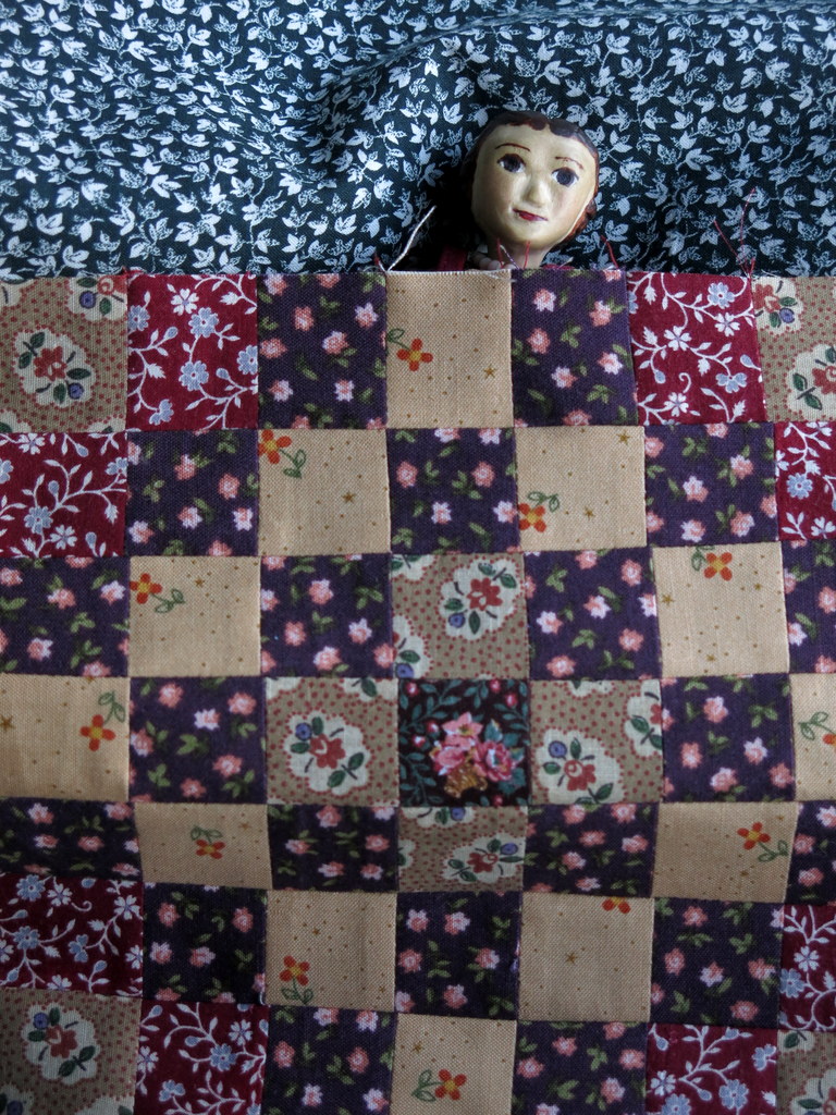 3. Oh, I do like to make mini quilts. I have a stack of fat quarters that would be just perfect for this…. hmm… I’m still hooked by your dolly! So beautiful!
