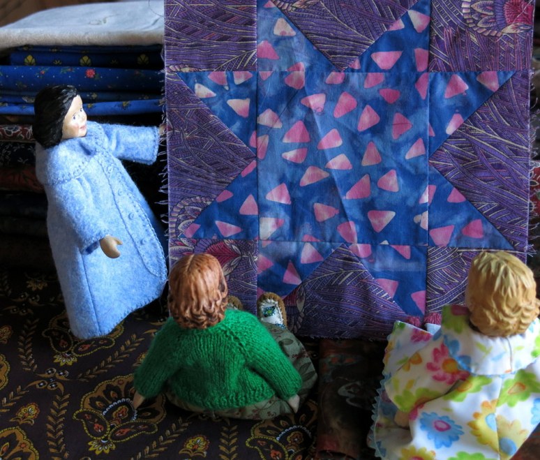 …and she admired a pretty patchwork block made up into a pink and purple eight-pointed star!