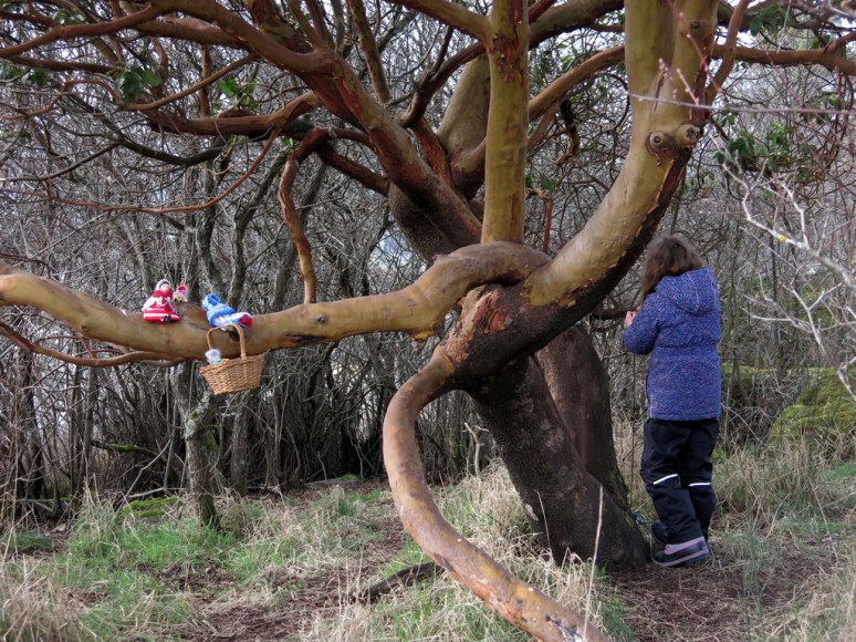 The young human said it was wonderful to live near the sea, and she was right! The arbutus tree was only recently extracted from an encircling thicket of gorse and broom, and we are so glad to see it’s beautiful form.