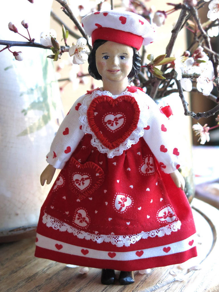 It’s a few days past Valentine’s day, but Vanilla is not ready to change out of her valentine outfit yet. It fits perfectly, is so comfy and makes her think of the kind friends who made the dress and hat…and it matches the new special occasion apron!