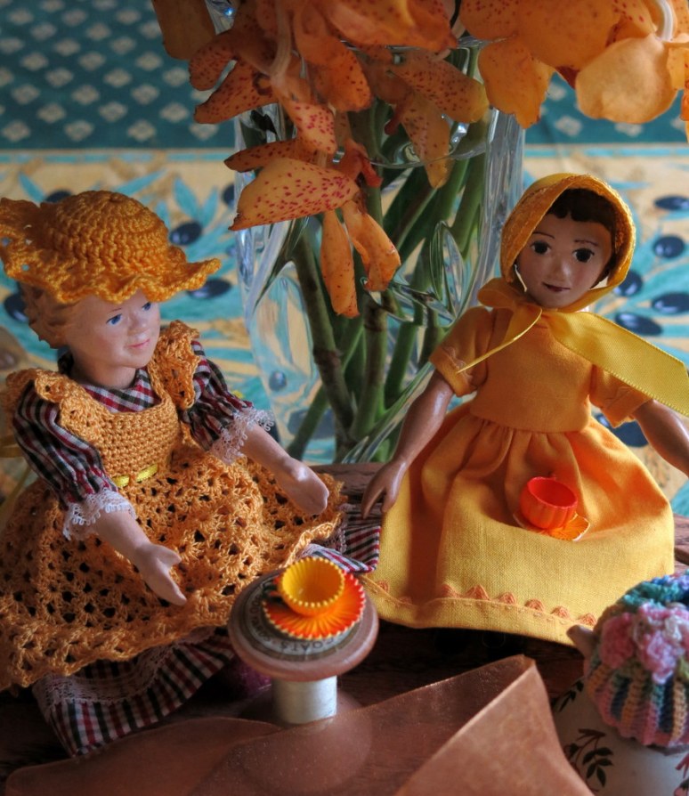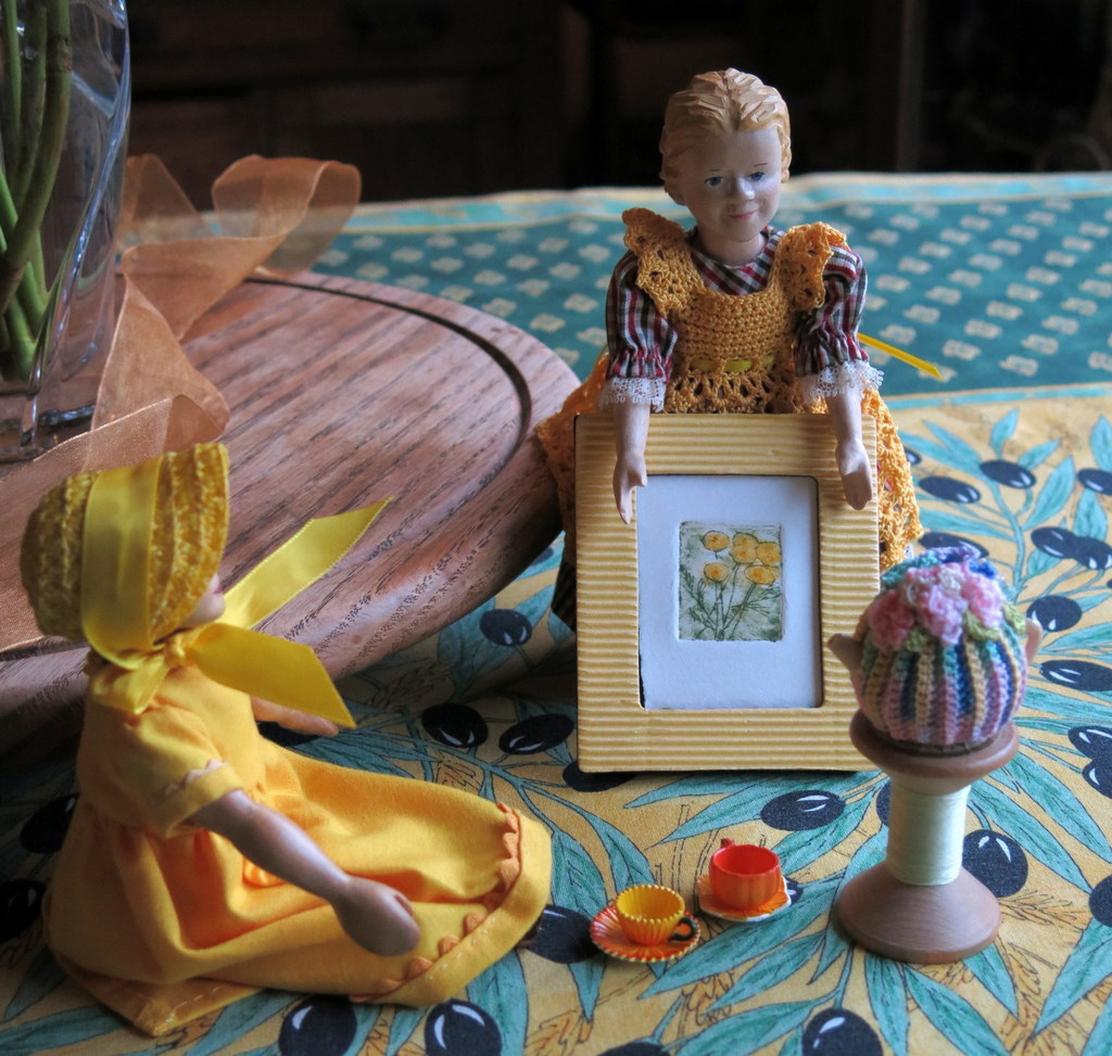 All that yellow has reflected sunshine into the little Hitty faces, no matter what the weather outside is doing.