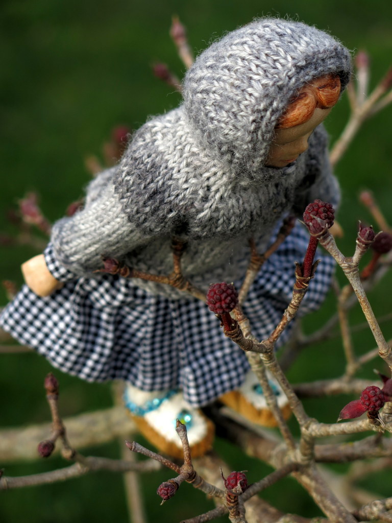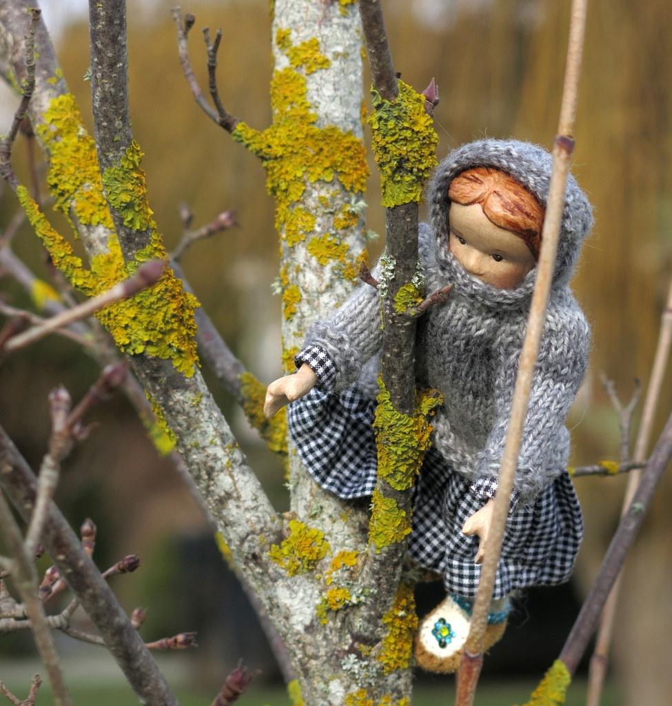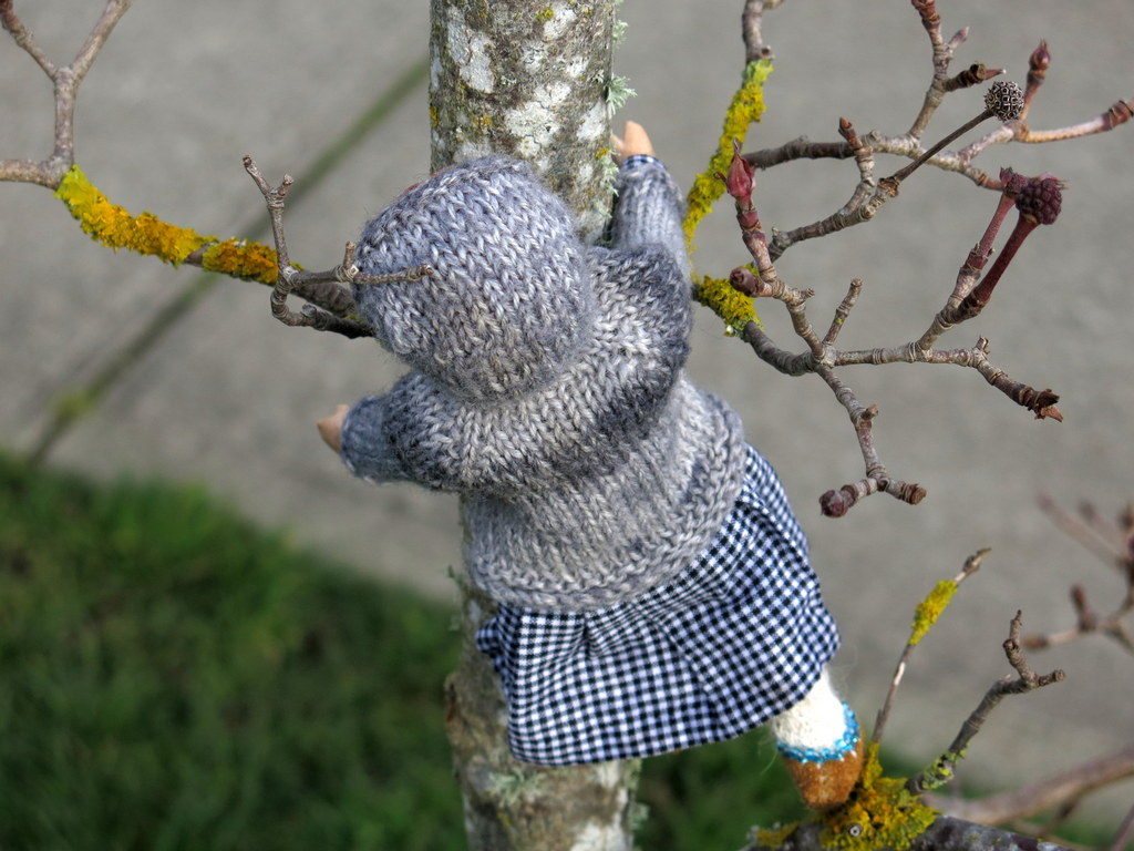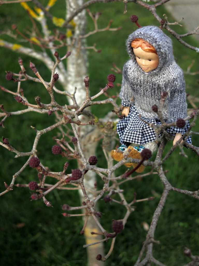 Floradora was glad to visit the tree now that she is a “real Doll” instead of a blank “almost doll”. The tree seemed willing to have her climb around in the branches, and admire the bumpy buds!