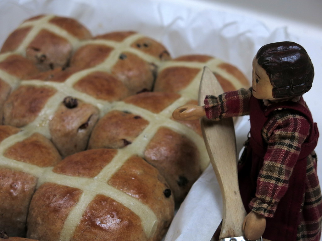 • After smelling that delicious fresh-baking scent all morning, the girls were willing to spend whatever they could find for a chance to taste the buns! Guttersnipe and Mudlark were glad to locate a penny that looked like the pennies they remember from their early days!