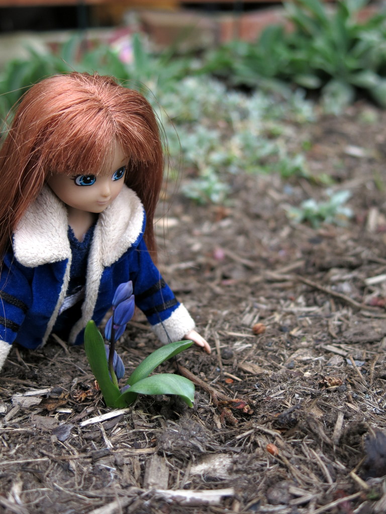 …and then she found a little blue Scilla just poking its head up out of the dirt!