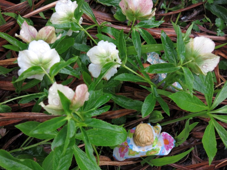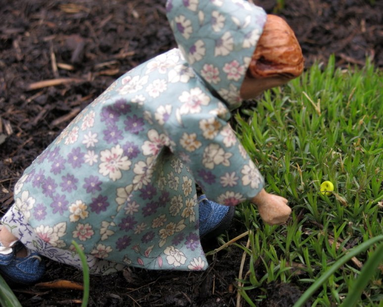 1. Raining here also. I encourage our Woodens to go outdoors but they prefer dry weather. I enjoy going out in the rain. The colors seem more vibrant in the rain or mist. I’m glad Henrietta found her button.