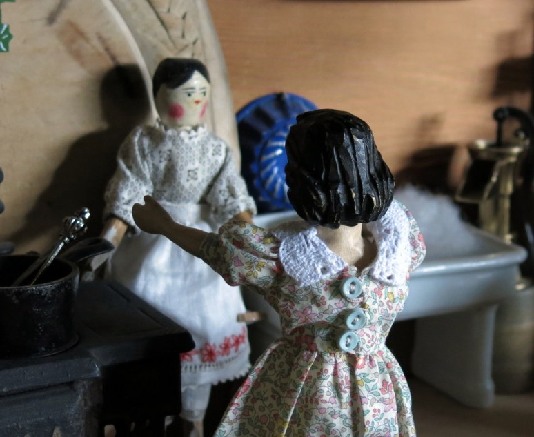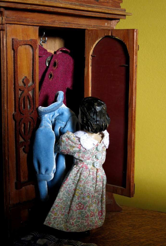 …but it is still a bit chilly outside so she collected her blue coat…