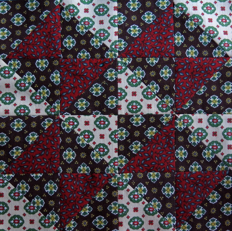 The June block fabrics under Vanilla used fabrics purchased by my mother-in-law on her visits to France in the 1960’s and 70’s (plus a red fabric with printed leaves)