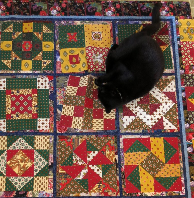2. It’s looking really good, and how lovely to have such a team of helpers! Are you going to join the blocks together, or will you use sashing strips like the quilt underneath?
