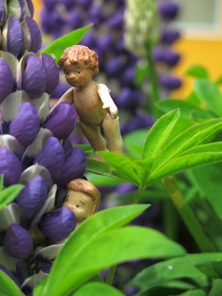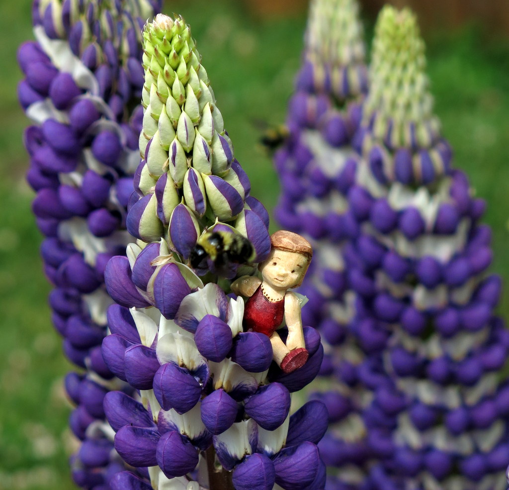 The wee darlings have been demanding an outing – they usually live in their little tin so as to not get lost, but I sometimes forget they are there! They did enjoy climbing round and round the Lupins!