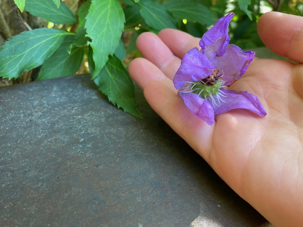 The flower was the very last rhododendron flower of the season, I think – very mauve, don’t you think?