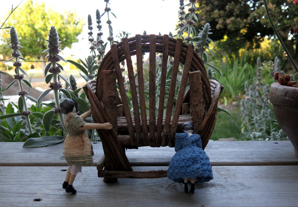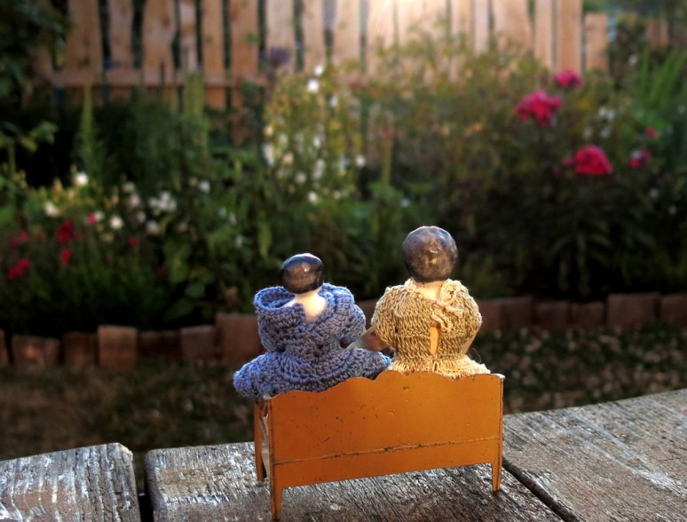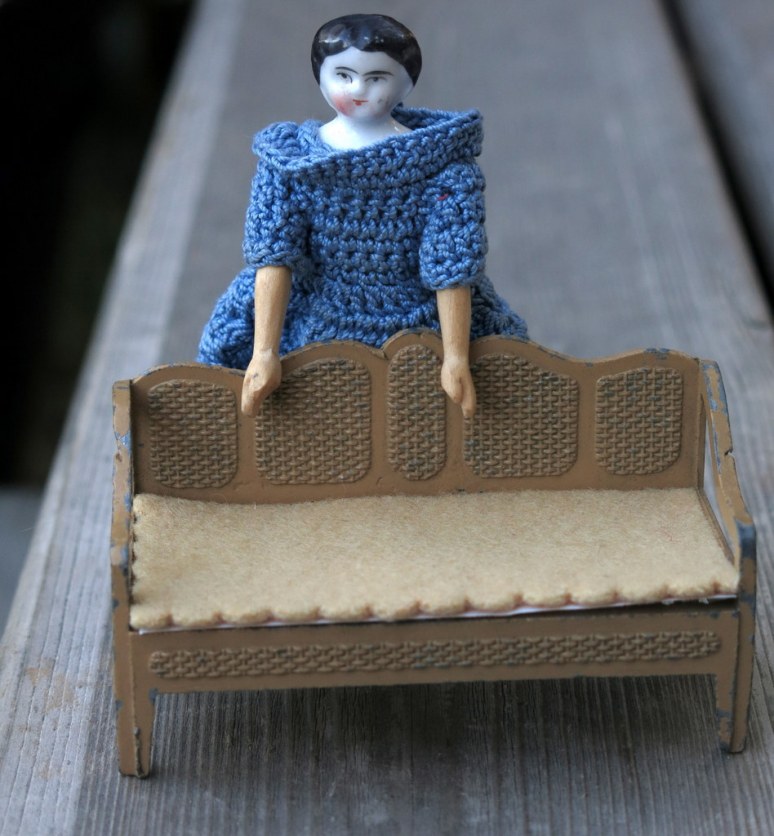The little tin settee actually might be a mite small for them, but they insist not – sometimes they just want to plop down in comfort without exerting their pegs.
