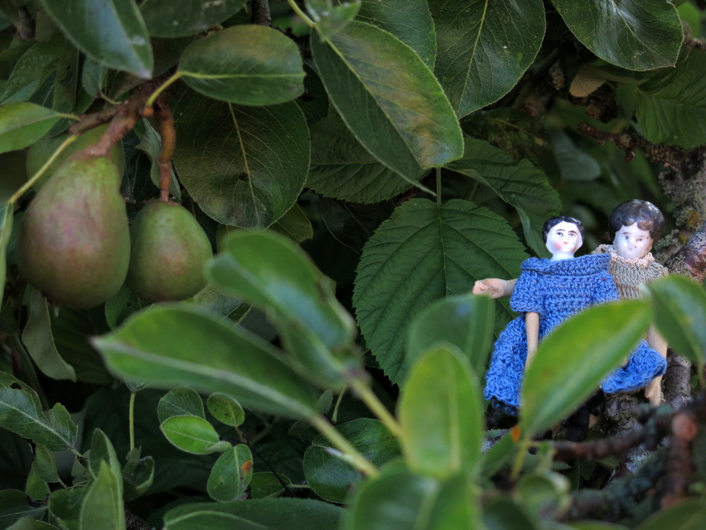 The flowers trail around, the fruit increases in length and circumference – lots going on here! We love watching the slow unfolding of nature…I actually think the dolls help me to see it better!