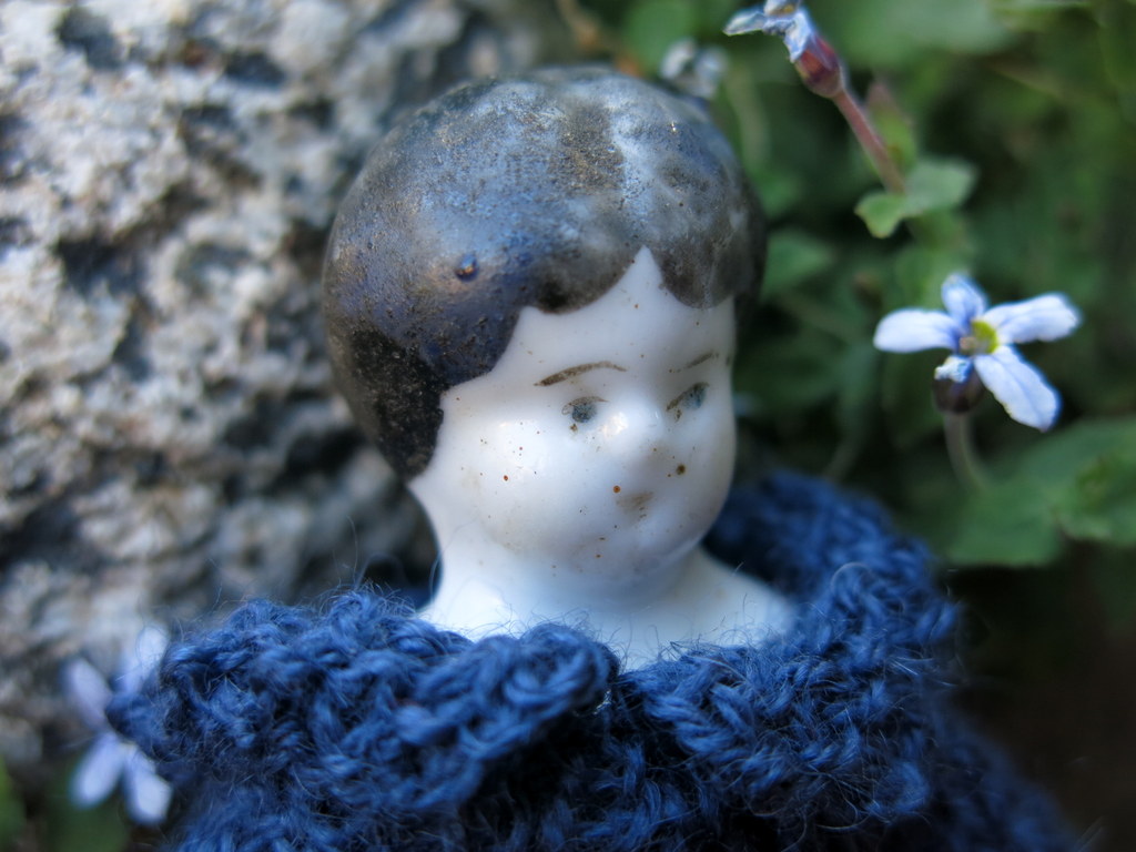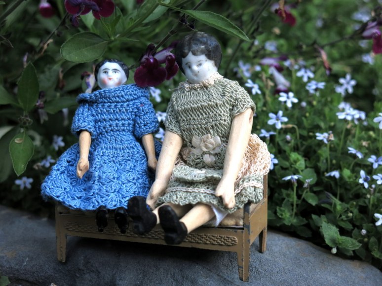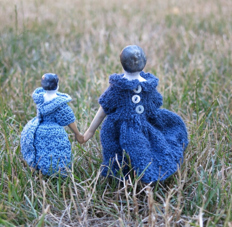 Mudlark was rescued from a muddy riverside in England. While eternally grateful for that, and for the new wooden body I carved her, she admitted that she was a little unhappy with the dress I found for her to wear. She thought the crochet was a little see-through, the dress too short, and the colour-scheme rather mud-coloured…