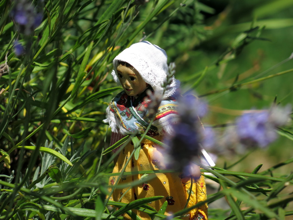 • Constance only puts on the Provençal outfit a couple of times a year…she thinks Lavender and Provence go together somehow, and would gladly take you home for a visit, and a sniff of the lovely lavender!