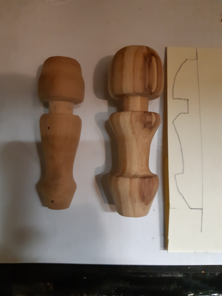 …and used her chisels to shape it. The model she used is on the left – the new Cherry blank on the right.