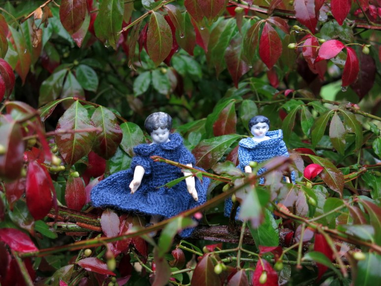 They got cold, so they went to sit in “Burning Bush” shrub but it was not any warmer…