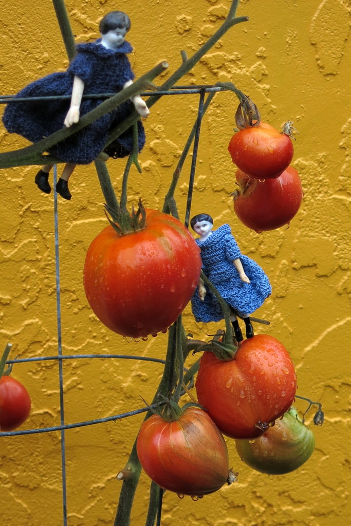 • We painted our house that colour because of the seemingly endless grey and dismal winters…we find it is very cheering to look at compared to the dark colours our neighbours seem to favour…and it is a bonus that tomatoes look great when growing against it!