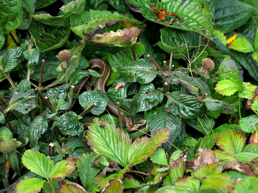 …and our resident Garter snake is trying to catch a few last rays of sun before the next storm.