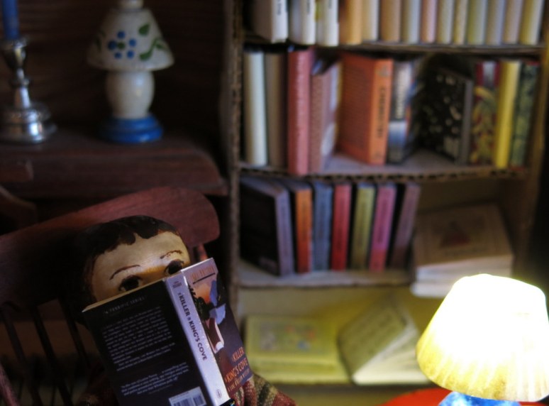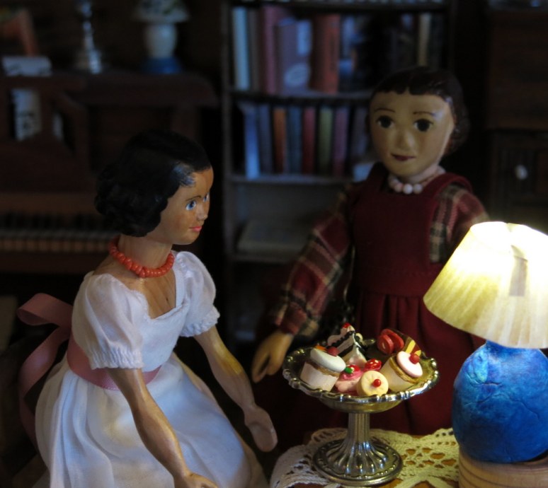 We are delighted to welcome a new little Hitty into the Hitty cupboard. She was carved by Bill Fifer and painted by our friend the Dollhouse Lady.  We’ve named her Hitty Willa after Bill, and she seems to be a sensible girl.  Her love of tea, dessert and books will help her fit right in.