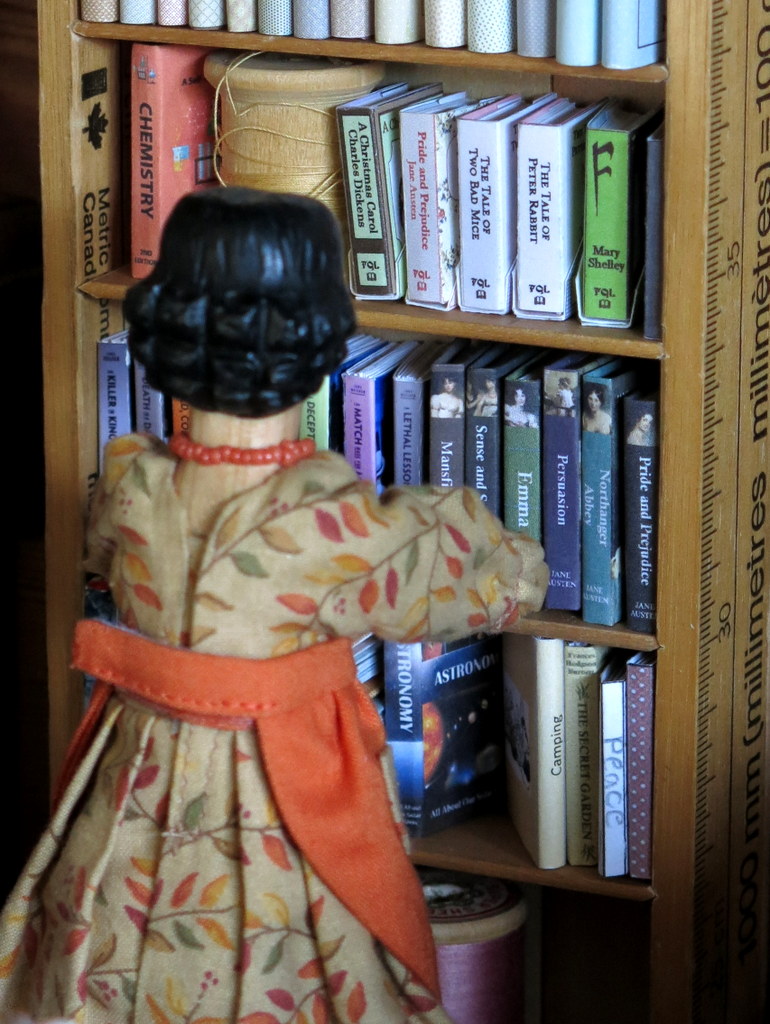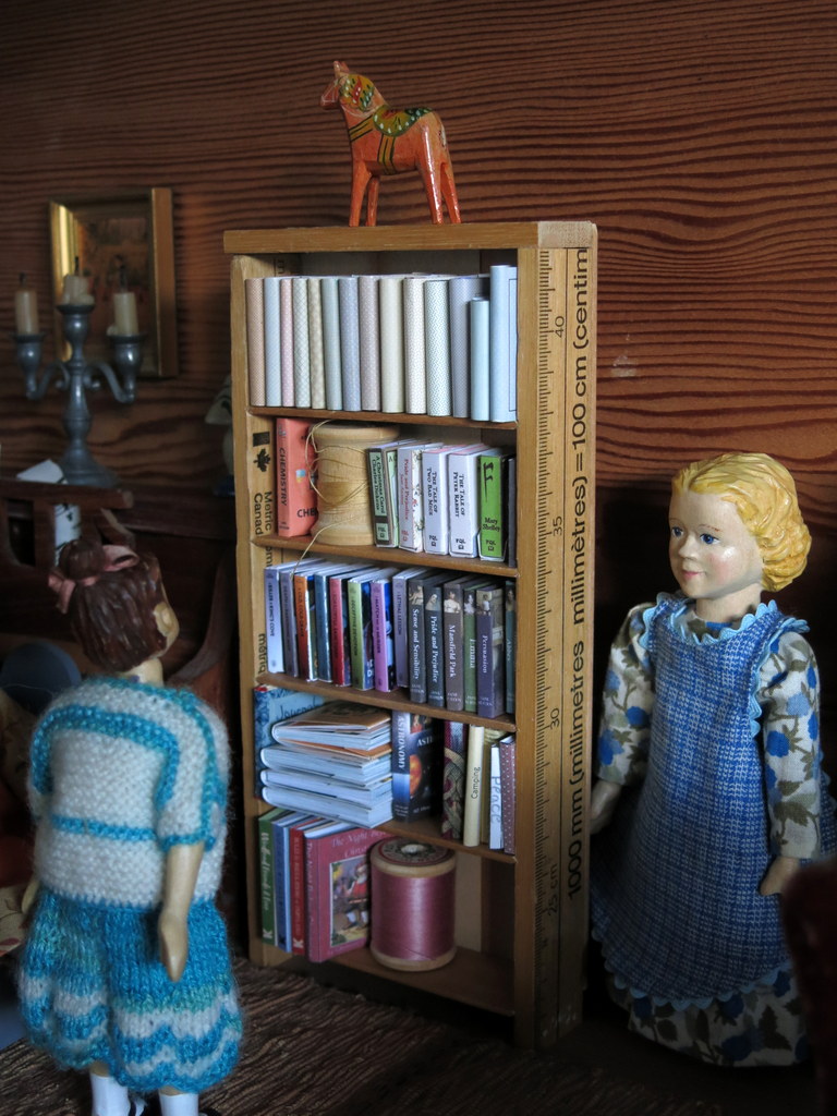 1. Lovely and ingenious bookcase! Congratulations to Willa and the human for all their careful and precise work. The vintage spools of thread on the shelves are a fun touch!