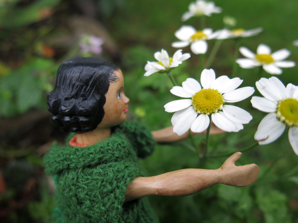 Willa found a few late-blooming flowers in the back garden…like Feverfew…