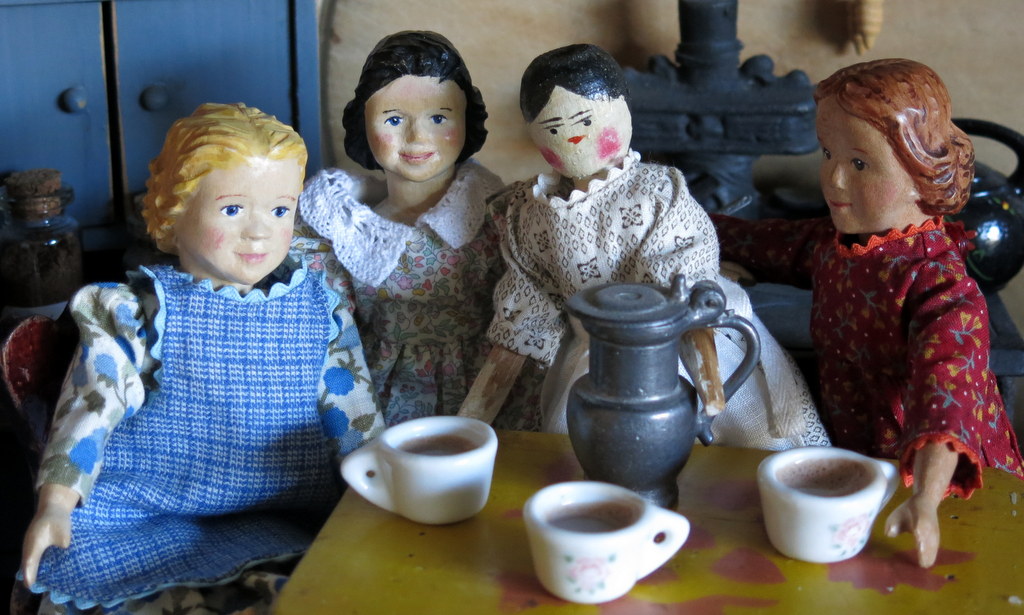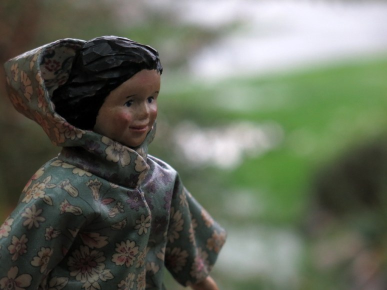 • The small wooden girls are glad to find small positive things, like hot chocolate and Christmas lights! The rain was unbelievable – the description of being in an atmospheric river was very apt!