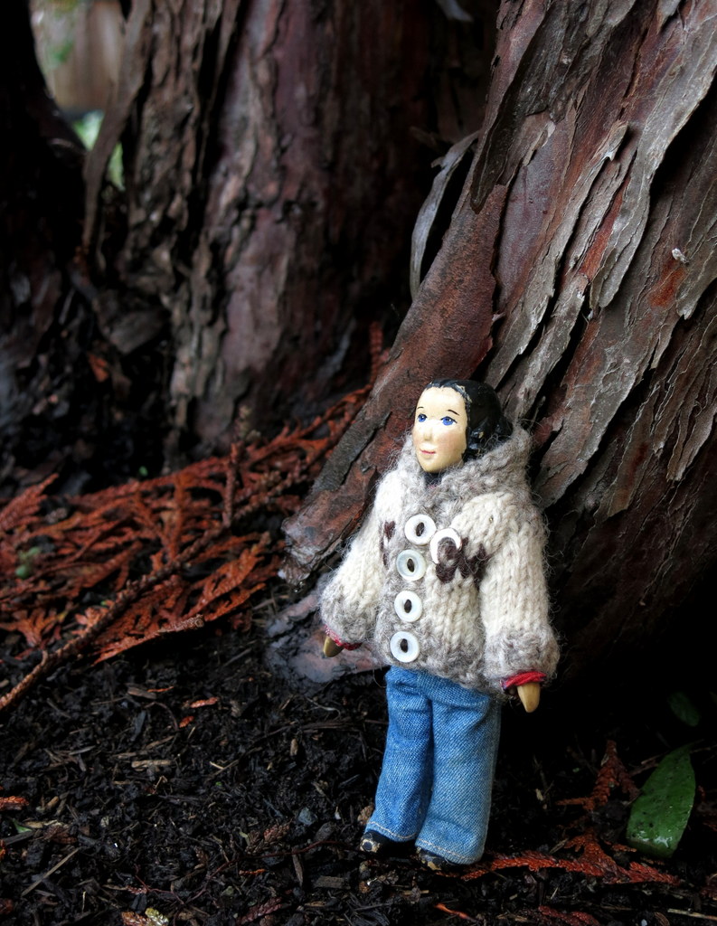 Tansy’s sweater is knit in the style of a local First Nation. You can find out about Tansy’s sweater here: