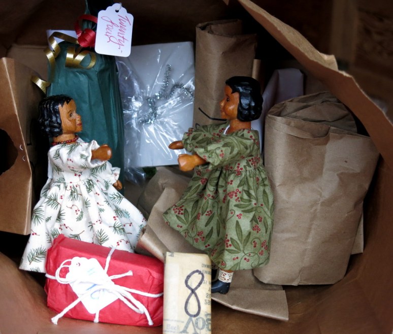 2. What a wonderful idea! A surprise advent calendar to look forward to each day. The girls look very pleased with everything and spread that happiness by sharing their Christmas clothes and decorations.