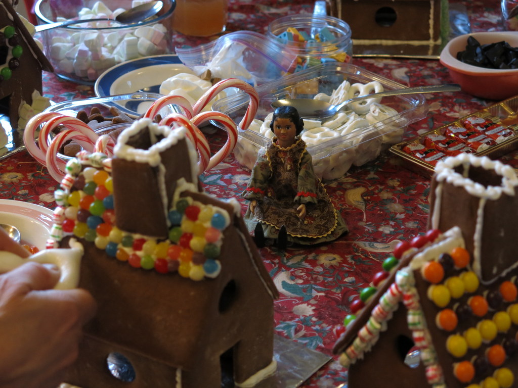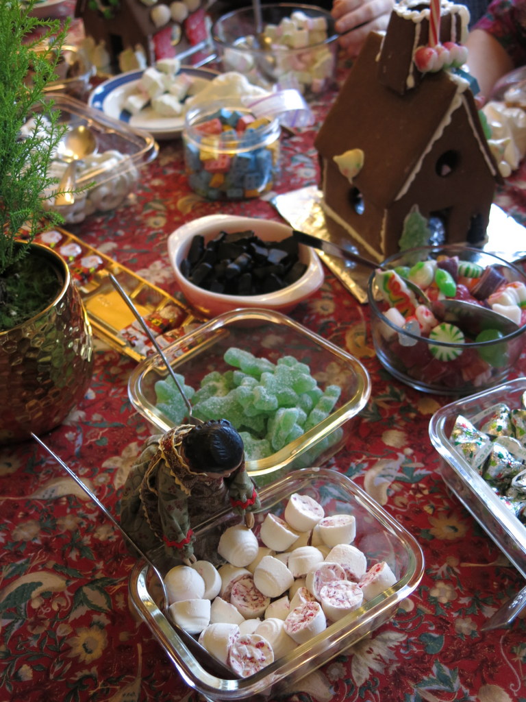 There was a fair amount of sampling going on, but as far as I heard there weren’t any digestive repercussions! All the elves were helpful…the tiny wooden hands were particularly useful in positioning the smallest satin candy pillows!