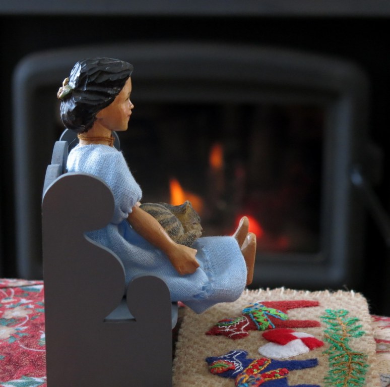 Hi Kjerstin, Sending peace and joy to you and the Quimper Hittys! Thank you so much for this peaceful, cozy scene. I love the dala horse rug. Did you make it? Wonderful! Judith
