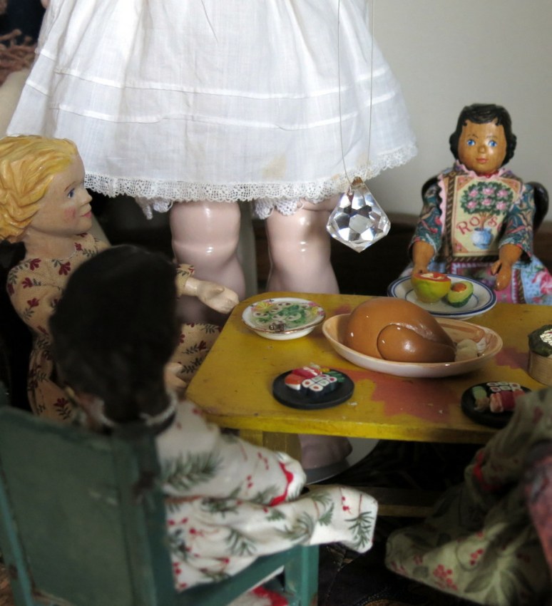 …the dolls went out to dinner and ate sushi, Turkey, Chinese mushroom soup, Avocado and Papaya, and steamed rice…