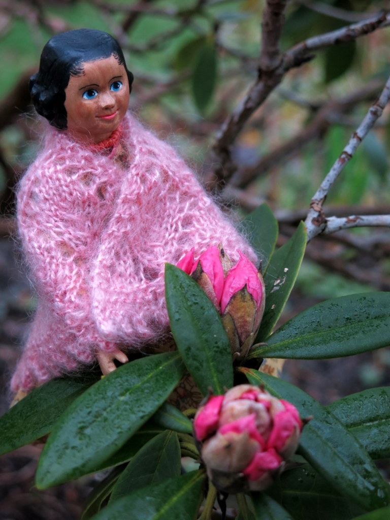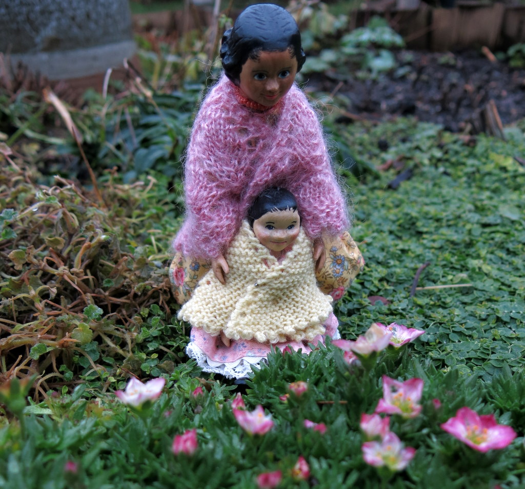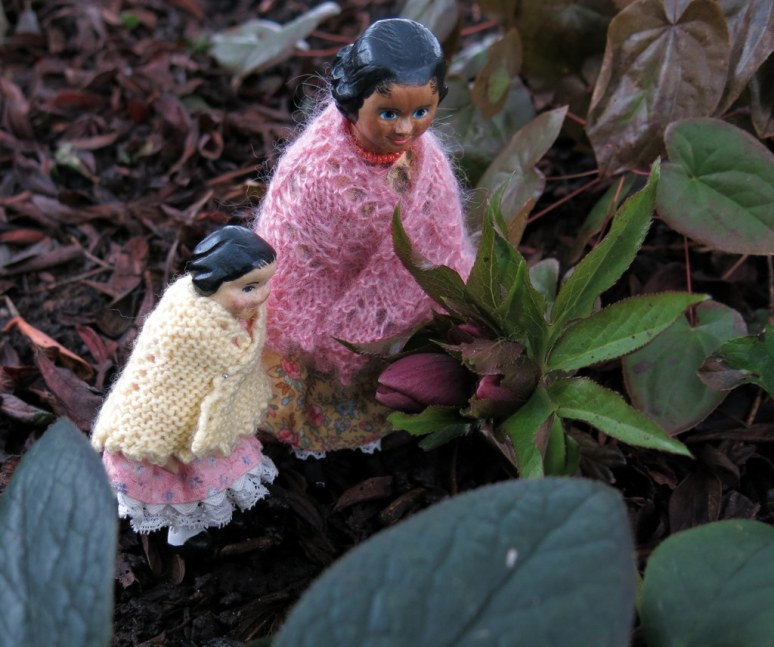 2. I’m looking outside at a foot of snow that fell overnight, so it is with double the wonder that I see the blooming alpine saxifrage and witch hazel! I love that Willa and Gilly dressed to match the garden. Or could it be that they have inspired the garden to bloom! Their shawls are so lovely! Thanks for taking us along on this garden stroll. Love, Judith