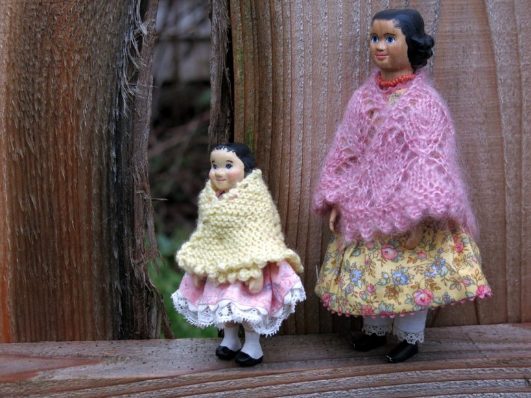 Those lovely shawls are perfect for such expeditions. We take turns with the cobwebs lace one you so kindly sent us. It belongs to Granny Blessing really, but on icy days she stays home. We take great care of it when she allows us to borrow it th go shopping or to forage for early dandelion leaves for supper.